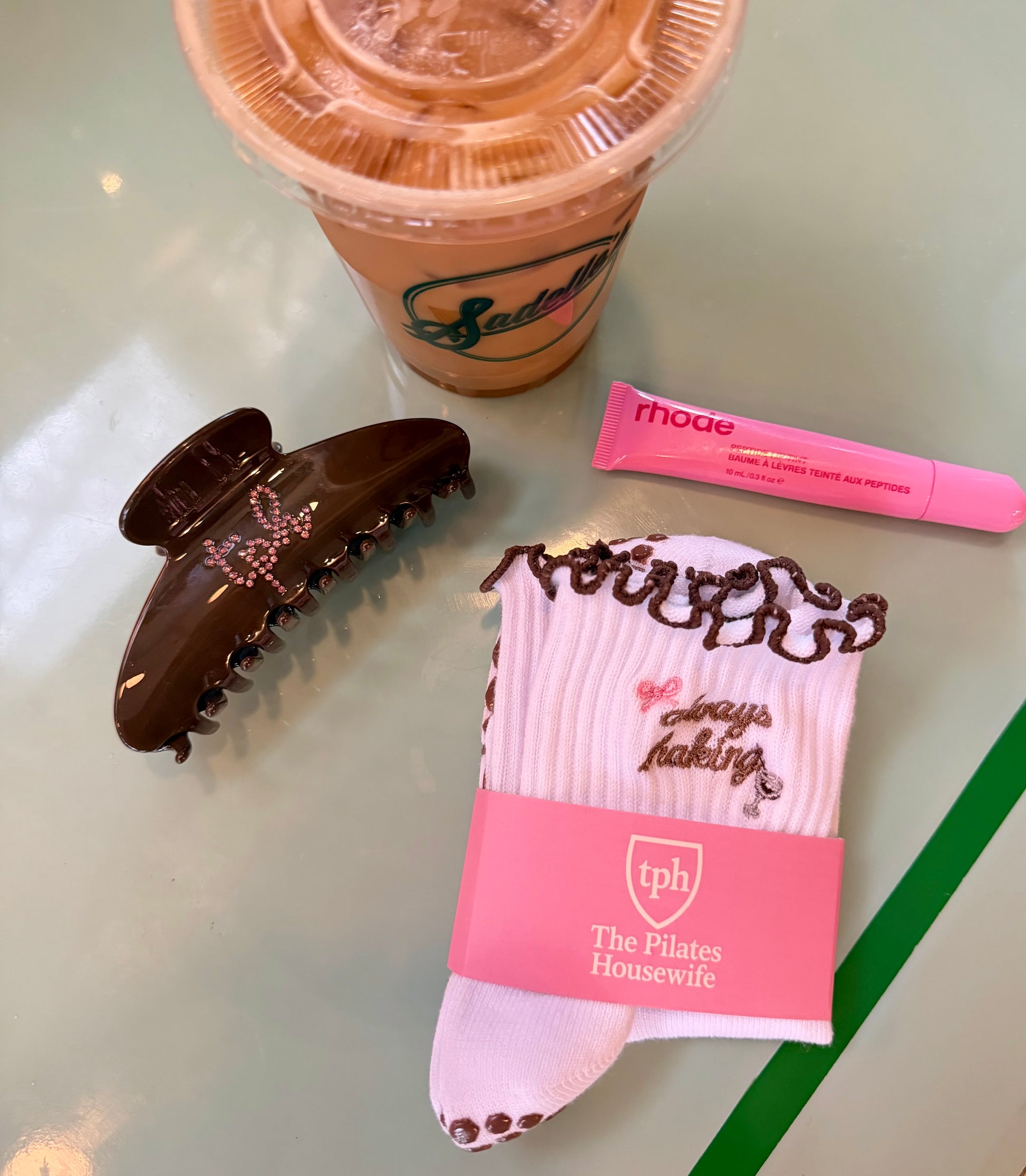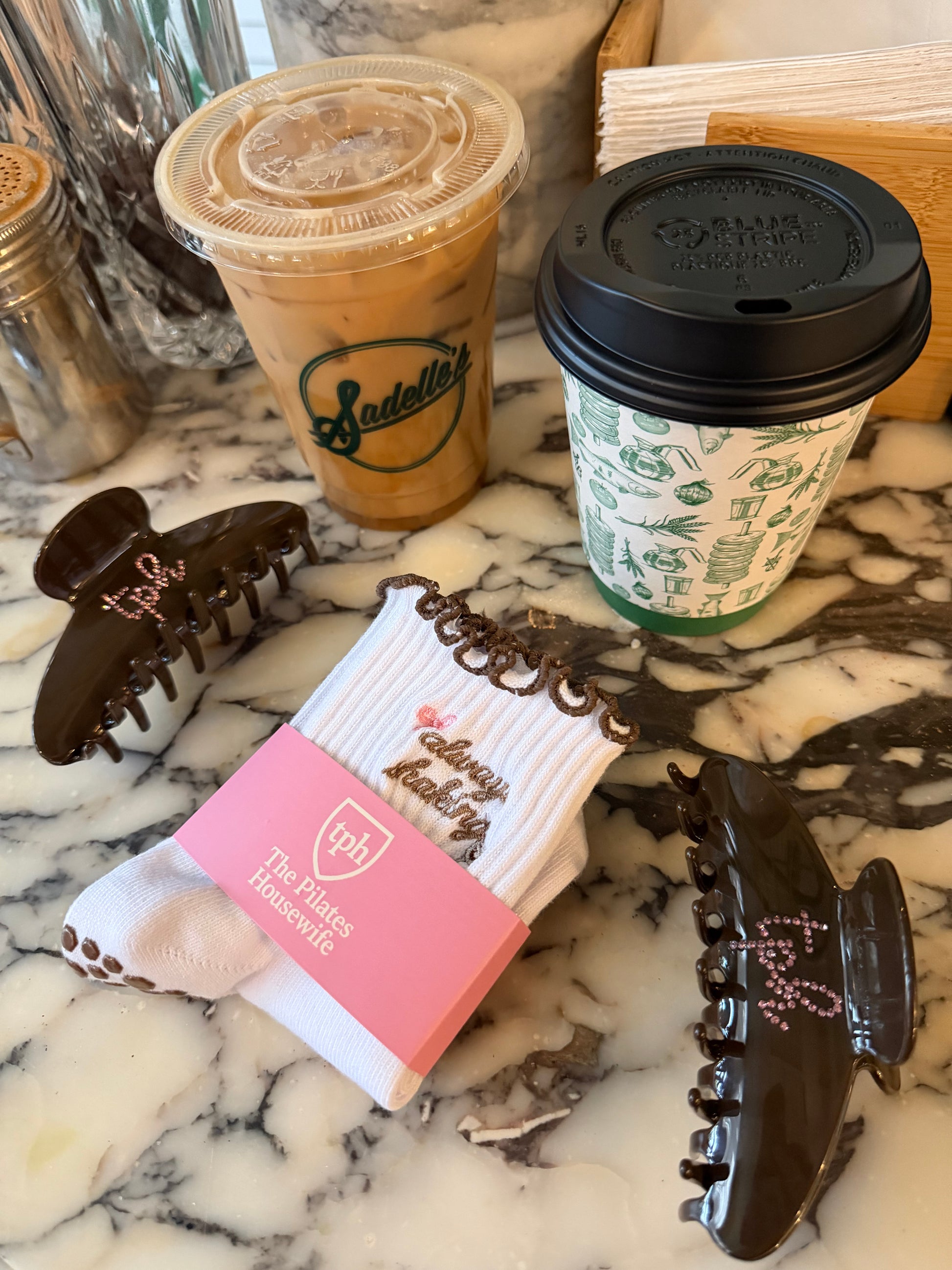 Meet your new best friend- our double-sided brown claw clip, finished with soft pink rhinestones because polished details are the vibe
